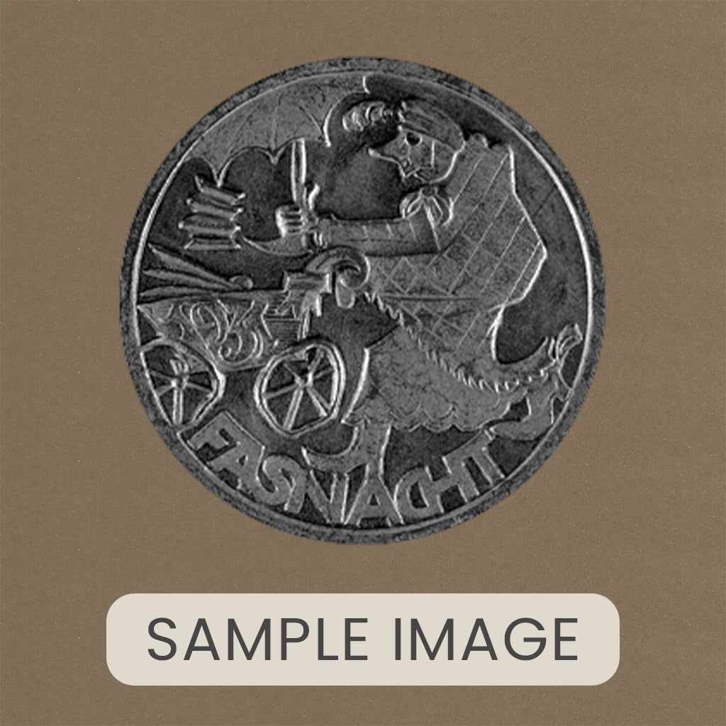 A handcrafted piece featuring a Blaggedde (Basel Fasnacht badge) from 1931. The theme of the year was "Die Alti Dante mit em Basler Wage" and the Blaggedde was designed by Karl Dietschy.