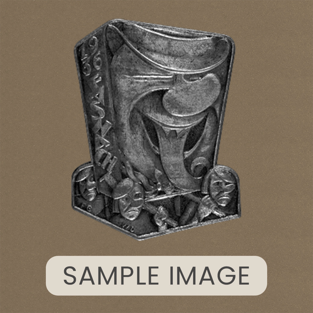 A handcrafted piece featuring a Blaggedde (Basel Fasnacht badge) from 1936. The theme of the year was "D Ladärne" and the Blaggedde was designed by Fritz Gross.