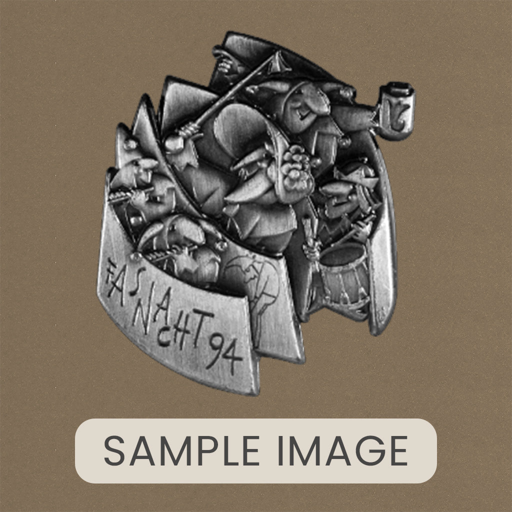A handcrafted piece featuring a Blaggedde (Basel Fasnacht badge) from 1994. The theme of the year was "Che serra?" and the Blaggedde was designed by Walter Lienert.