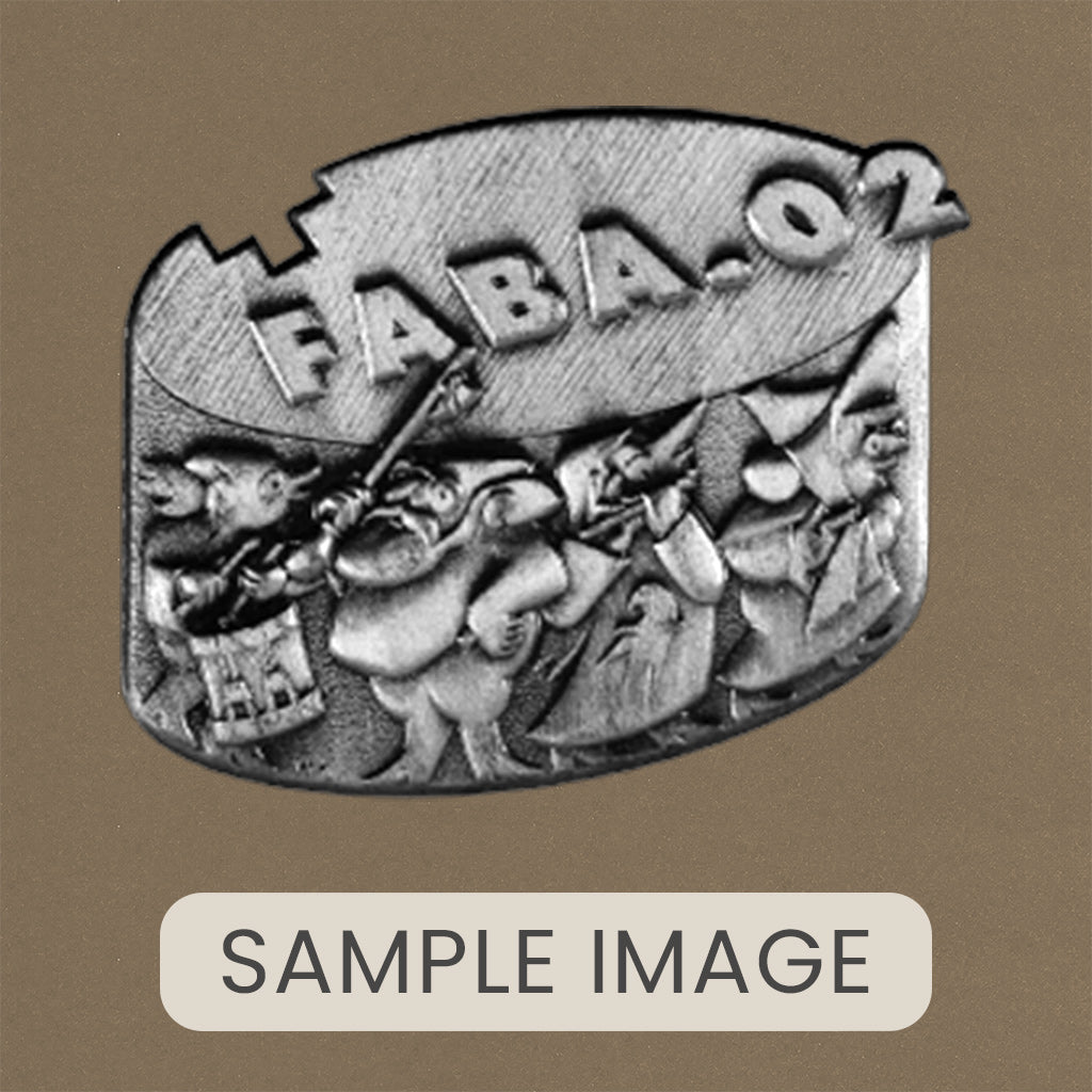 A handcrafted piece featuring a Blaggedde (Basel Fasnacht badge) from 2002. The theme of the year was "Arteplage am Rhy!" and the Blaggedde was designed by Werner Kern.