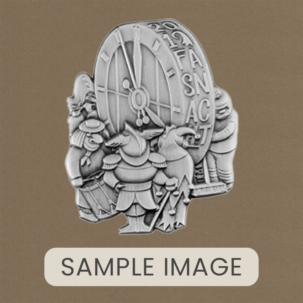 A handcrafted piece featuring a Blaggedde (Basel Fasnacht badge) from 2019. The theme of the year was "Bis zletscht" and the Blaggedde was designed by Tarek Moussalli.